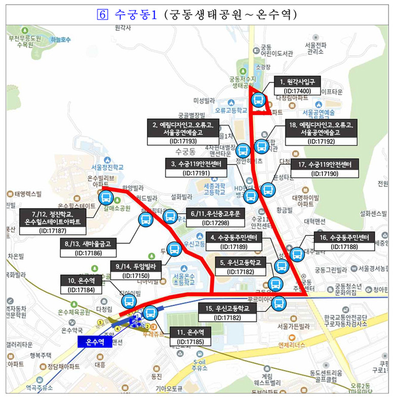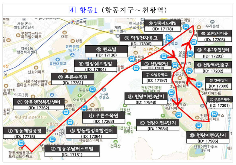 운행 노선은 △구로동1(신도림역∼남구로역) △구로동2(디지털단지오거리∼구로역) △고척동1(고척사거리∼오류동역) △항동1(항동지구∼천왕역) △구로동3(디지털단지오거리∼구로디지털단지역) △수궁동1(궁동생태공원∼온수역) △항동2(항동지구∼온수역∼오류동역) 등이다.